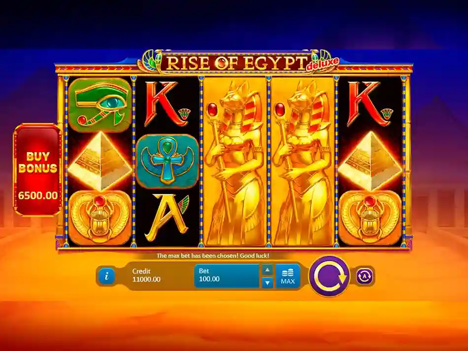 Rise of Egypt працює за класичною схемою відеослотів з сучасними доповненнями. Гравець встановлює розмір ставки за допомогою кнопки Bet, яка відкриває список доступних значень, або використовує стрілки вгору/вниз для зміни ставки покроково. Кнопка Max дозволяє миттєво встановити максимальну дозволену ставку. Після налаштування ставки кнопка Spin запускає барабани, а Autoplay активує режим автоматичної гри на обрану кількість обертів без перерв.
